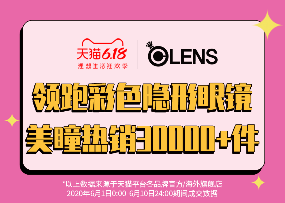 丽人丽妆是天猫六星级服务商,是善于引爆品牌线上增量的幕后推手,OLENS作为丽人丽妆去年新合作品牌,在本次天猫618业绩取得爆发式增长,领跑彩色隐形眼镜,成交大放异彩。