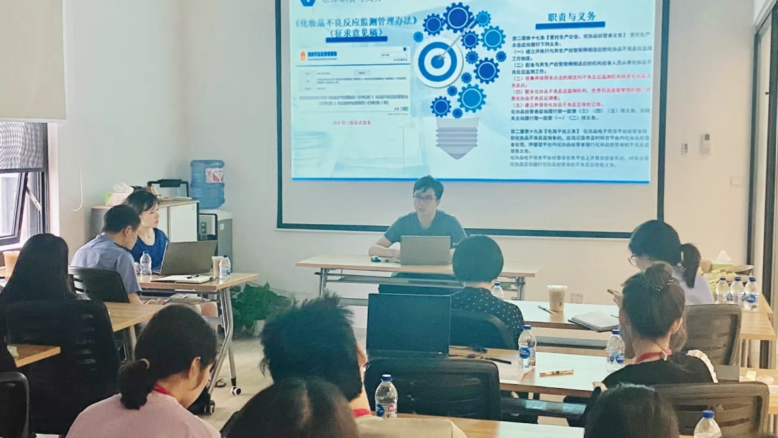 会上,李超科长首先分享了《化妆品监督管理条例》、《化妆品标签管理办法》等国家化妆品合规政策最新标准及要求,并希望丽人丽妆作为区域电商龙头企业起到法务合规工作的带头表率作用。随后,陈欢欢主任与朱锋雷老师先后就化妆品不良反应相关案例及不良反应上报意义、填表规范等专项话题,与公司参会人员互动交流,帮助公司了解有关化妆品不良反应监测工作的最新政策法规以及监测工作的相关知识和注意事项,为2021年公司处理化妆品不良反应监测及上报的工作能力夯实了基础。